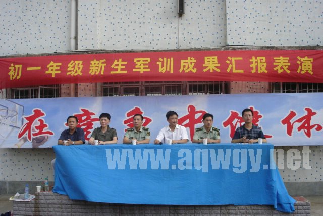 9月8日下午,我校在學(xué)校操場(chǎng)隆重舉行初一年級(jí)新生軍訓(xùn)成果匯報(bào)表演。匯報(bào)表演由德育部江浪主任主持。市武警部隊(duì)領(lǐng)導(dǎo)、我校許緒常校長(zhǎng)、孫藝軍主任、凌謙主任在主席臺(tái)就坐。