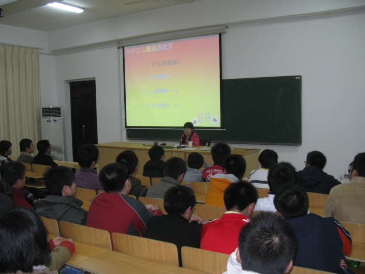講座圍繞:什么是健康;心理疾病;心理健康的標準;中學(xué)生心理健康現(xiàn)狀;影響中學(xué)生心理健康的因素,五個問題展開。在講座中,曹老師結(jié)合理論知識列舉了大量的數(shù)字,讓同學(xué)們知道了全球所存在的心理方面的問題以及中國現(xiàn)階段中學(xué)生心理健康現(xiàn)狀。告訴了同學(xué)們中學(xué)生心理健康的標準,結(jié)合實際生動的小事例,使同學(xué)們重新審視了自己的心理健康狀態(tài)。在輕松的講座中,曹老師分析了學(xué)生、家長、老師共同困惑的早戀問題。講述了早戀對同學(xué)們身心發(fā)展的影響,幫助同學(xué)們從羞澀的情感問題中解脫自我,撥開心頭疑云,重新塑造完美人生。切合生活實際的講座,讓在場的每一位同學(xué)都聽得津津有味,雷鳴般的掌聲不斷響起。很快講座在曹老師溫婉的言語中結(jié)束了,我們相信這樣的講座會經(jīng)常在校園中舉行。
