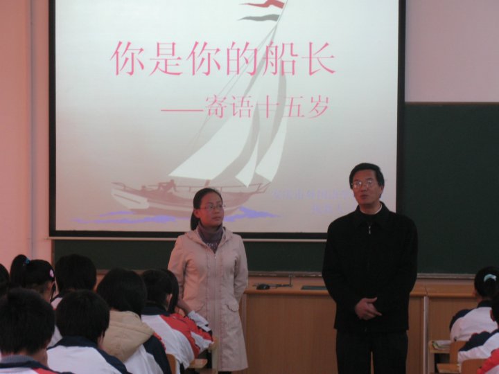 3月11日下午,我校一樓合班教室座無(wú)虛席,來(lái)自全市的數(shù)百位語(yǔ)文教師在市教研室劉和程主任的帶領(lǐng)下親臨我校,準(zhǔn)備聽取我校八年級(jí)語(yǔ)文教師任啟星開設(shè)的教學(xué)觀摩課《你是你的船長(zhǎng)——寄語(yǔ)十五歲》。這是一篇演講稿,是一篇看似簡(jiǎn)單孝很難上好的語(yǔ)文。安外的語(yǔ)文教師會(huì)如何把握這節(jié)課,幾乎所有的聽課教師都在等待……上課鈴聲終于響起,任老師用一段充滿激情的演講帶領(lǐng)同學(xué)們進(jìn)入了本課學(xué)習(xí)。整節(jié)課上,同學(xué)們興致高昂,或者聆聽,或者朗讀,或者思考,或者討論,完全融入了輕松、活躍、高效、和諧的語(yǔ)文課堂,同學(xué)們激情洋溢的即興演講更是將這節(jié)課推向了高潮。最后,在任老師對(duì)同學(xué)們充滿希望的寄語(yǔ)當(dāng)中,結(jié)束了本課的學(xué)習(xí)。