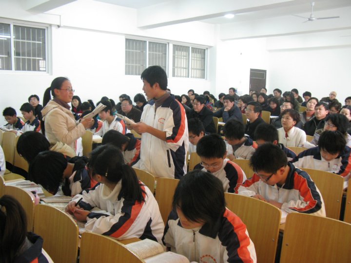 聽課結(jié)束之后,市教研室劉和程主任主持召開了評(píng)課會(huì)議。我校黃文莉校長(zhǎng)首先發(fā)言,感謝所有聽課教師蒞臨我校,歡迎各位教師暢所欲言,幫助我校進(jìn)一步增強(qiáng)教師素養(yǎng)。隨即,各所學(xué)校都派教師代表對(duì)這節(jié)課進(jìn)行了點(diǎn)評(píng),充分肯定了安外語(yǔ)文教師扎實(shí)的教學(xué)素養(yǎng),同時(shí)也對(duì)安外學(xué)生的高素質(zhì)進(jìn)行了稱贊。最后,劉主任針對(duì)本節(jié)課并結(jié)合當(dāng)前中學(xué)語(yǔ)文教學(xué)的現(xiàn)狀,作了更加精彩細(xì)致的發(fā)言,贏得了聽課教師一陣又一陣熱烈的掌聲。在熱烈的掌聲中,在對(duì)語(yǔ)文教學(xué)的不斷思索中,本次八年級(jí)語(yǔ)文教學(xué)觀摩活動(dòng)圓滿地落下了帷幕。
