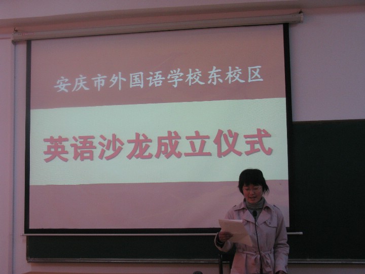 為了進一步體現(xiàn)安外的外語教學(xué)特色,培養(yǎng)學(xué)生學(xué)英語、用英語的興趣,2009年3月17日清晨,安慶市外國語學(xué)校英語沙龍正式成立。成立儀式上,我們有幸邀請到了黃文莉校長,程金柳校長蒞臨現(xiàn)場。同時,張莉老師精彩的發(fā)言博得了小會員們陣陣的掌聲。同學(xué)們情緒高漲,現(xiàn)場氣氛熱烈。會后,小會員們還在老師的帶領(lǐng)下參觀了英語沙龍教室。看著窗明幾凈的教室,嶄新的英語雜志以及多媒體設(shè)施,小會員們掩飾不住內(nèi)心的激動和期待,紛紛表示要像黃校長說的那樣:“Study in English, speak in English, and even dream in English.”