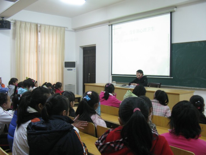 講座的主要內(nèi)容分為兩個(gè)部分:青春期衛(wèi)生保健和青春期心理健康。講座中,老師清晰、生動地告訴孩子們在日常生活中應(yīng)注意的諸多問題??粗⒆觽儑?yán)肅而認(rèn)真的表情,我們相信,這短短的45分鐘,對于她們來說,應(yīng)該是青春期乃至整個(gè)人生道路中一個(gè)嶄新而又健康的開始?!扒啻菏且皇赘琛保挥薪】?,才能讓青春之歌更加嘹亮。