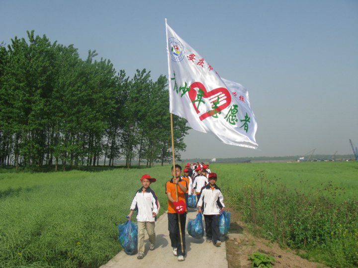 今天我們安慶市外國語學(xué)校的環(huán)保小衛(wèi)士們來到了美麗的長風(fēng)沙,我們所站的地方就是長風(fēng)沙美麗的沙灘?!跋嘤坏肋h(yuǎn),直至長風(fēng)沙”,長風(fēng)沙,這個頗具“中國風(fēng)”韻味的地名,因李白的這句詩而聞名。這塊方圓七十平方公里的彈丸之地,卻積淀著數(shù)百年厚重的歷史,她曾吸引不少歷代文人墨客逗留于此,留下了不少千古絕唱。長風(fēng)沙得天獨(dú)厚的自然風(fēng)光豪邁大氣,又給人一種奪人心魄的氣勢。正是因?yàn)槿绱耍L風(fēng)沙已成為安慶這座歷史文化名城的一個重要組成部分,長風(fēng)沙是安慶人的驕傲。愛護(hù)長風(fēng)沙,保護(hù)長風(fēng)沙的自然環(huán)境是我們每個青年學(xué)生應(yīng)盡的義務(wù)。