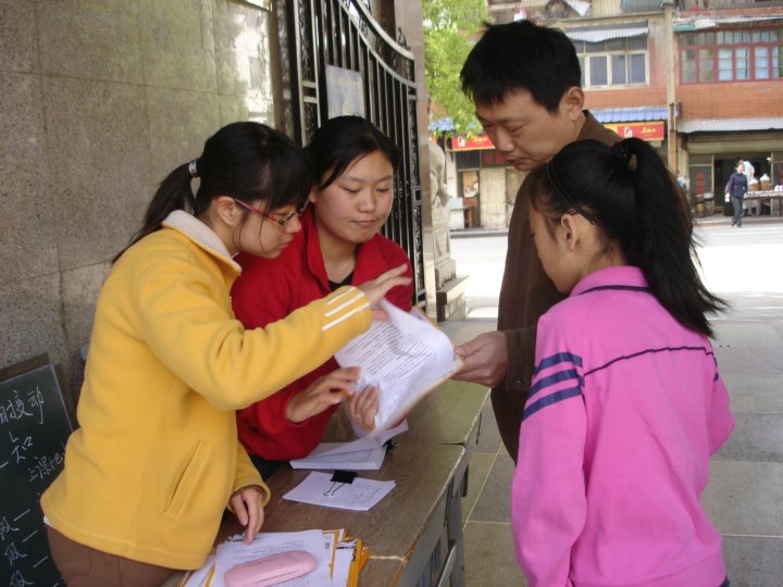 活動當(dāng)天,學(xué)校彩旗飄揚,人聲鼎沸,前來我校咨詢的家長和學(xué)生絡(luò)繹不絕,川流不息。我校教職員工也以飽滿的熱情,親切的態(tài)度喜迎尊貴的客人們。教室里,多媒體課件展示了我校辦學(xué)五年來取得的各方面成績和學(xué)校教師的風(fēng)采;負(fù)責(zé)接待的老師們認(rèn)真細(xì)致的解答著家長們提出的問題,幫助家長了解我校今年的辦學(xué)成果、招生政策、師資力量、德育教育等方面的內(nèi)容。在全體教職員工的共同努力下,我校招生咨詢?nèi)栈顒荧@得了圓滿成功。