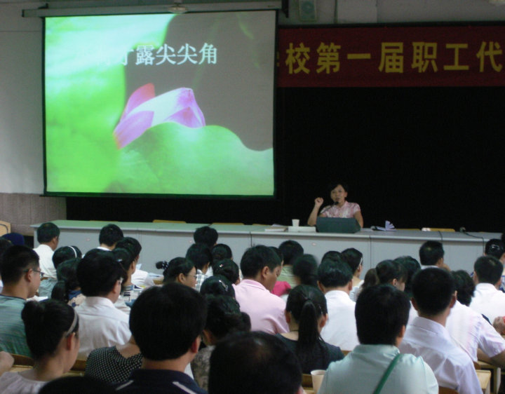 會(huì)上,黃文莉校長(zhǎng)作《2009—2010學(xué)年度學(xué)校工作報(bào)告》。黃校長(zhǎng)對(duì)安外幾年來的辦學(xué)歷程進(jìn)行了階段性的梳理,肯定了全體員工為學(xué)校做出的卓越貢獻(xiàn),同時(shí)要求全體教職員工同心同德、同心協(xié)力、同舟共濟(jì),為學(xué)生提供最為優(yōu)質(zhì)的服務(wù),共創(chuàng)安外“映日荷花別樣紅”的明天!