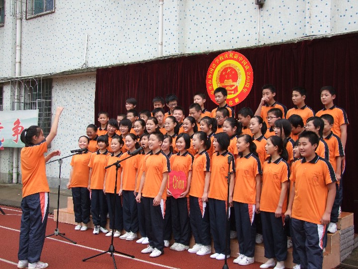 為隆重慶祝中華人民共和國成立60周年,豐富校園文化生活,安慶市外國語學校西校區(qū)于本周六下午在后操場舉辦了初二年級大合唱比賽。