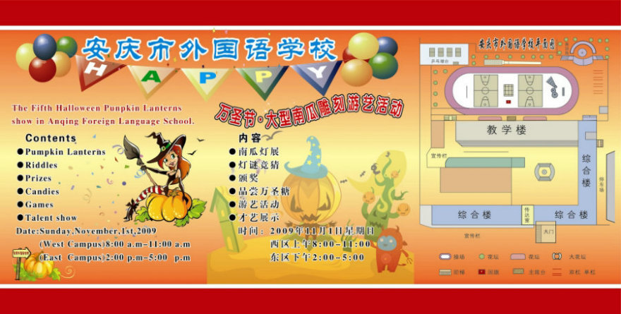 安慶市外國語學校2009年萬圣節(jié)大型南瓜雕刻游戲活動海報