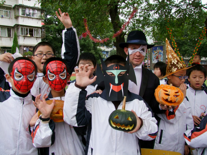 11月1日的安外校園,人聲鼎沸、彩旗招展,2009年“萬圣節(jié)•大型南瓜雕刻游藝活動”在學校東、西兩校區(qū)隆重舉行,活動吸引來了來自全市各小學的數(shù)千名學生和家長。