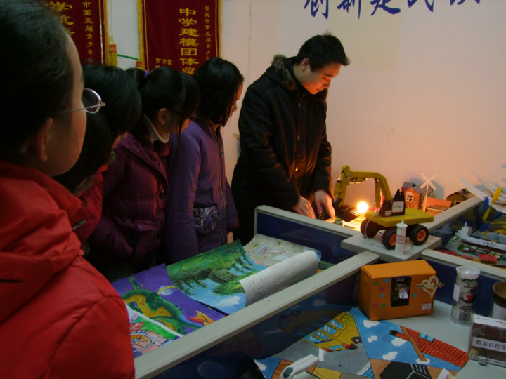 2009年12月16日下午第三節(jié)課后安慶市外國(guó)語(yǔ)學(xué)??萍季銟?lè)部舉行校科技作品展,作品主要包括:航模比賽獲獎(jiǎng)作品、科幻畫及校小發(fā)明小創(chuàng)造獲獎(jiǎng)作品??萍甲髌氛刮撕芏鄬W(xué)生前來(lái)參觀,大家對(duì)同學(xué)們的發(fā)明作品表現(xiàn)出濃厚的興趣,很多同學(xué)表示在以后的學(xué)習(xí)生活中要培養(yǎng)自己的創(chuàng)新意識(shí)和創(chuàng)新能力,爭(zhēng)做創(chuàng)新型人才。