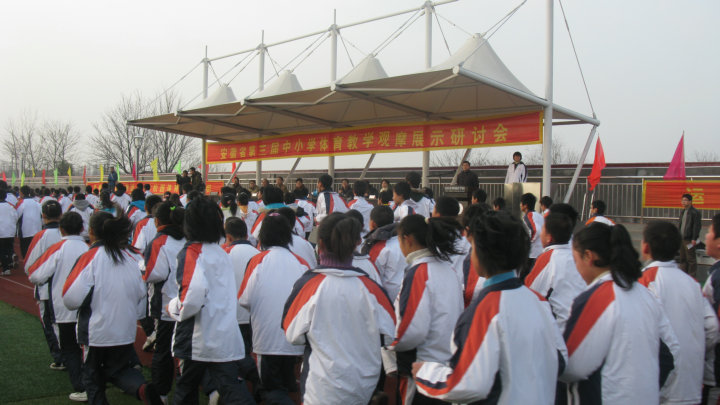 為進(jìn)一步貫徹落實(shí)《中共中央關(guān)于加強(qiáng)青少年體育增強(qiáng)青少年體質(zhì)的意見》,深入推進(jìn)我省中小學(xué)體育課程改革,提高體育教學(xué)質(zhì)量和效率,交流課改以來體育教學(xué)工作經(jīng)驗(yàn),促進(jìn)體育(與健康)課程課堂教學(xué)質(zhì)量的提高,安徽省教育科學(xué)研究院組織舉行了第三屆安徽省中小學(xué)體育教學(xué)觀摩展示研討活動,此項(xiàng)活動于2009年12月17日和18日在我校隆重舉行。