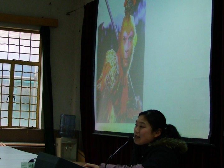 老師首先在大屏幕上向同學們展示了許多婦孺皆知的經(jīng)典人物形象,并要求同學們用一到兩個詞來形容人物的特點。屏幕上先后出現(xiàn)了孫悟空、唐僧等生動的形象。同學們都非?;钴S,爭相舉手發(fā)表自己的意見。當屏幕上出現(xiàn)豬八戒時,同學們都笑了起來,有人說他“肥頭大耳”,有人說他“憨態(tài)可掬”,此時,同學們已經(jīng)完全融入了老師所帶領的世界中。