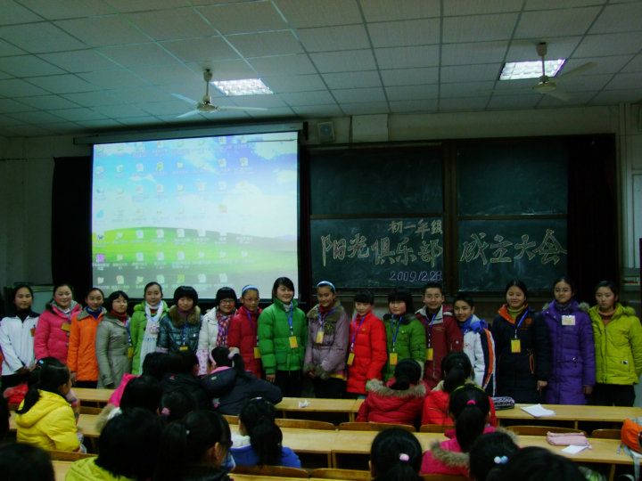 12月28日下午第四節(jié)課,我校陽(yáng)光俱樂(lè)部在報(bào)告廳舉辦了初一分社成立大會(huì)。會(huì)議由上屆俱樂(lè)部副社長(zhǎng)吳夢(mèng)玥主持,首先宣讀了新入社會(huì)員名單,并且給競(jìng)選上的12名理事會(huì)成員頒發(fā)了“陽(yáng)光使者證”。緊接著,由卓亞妮同學(xué)代表老會(huì)員向新會(huì)員致歡迎詞。