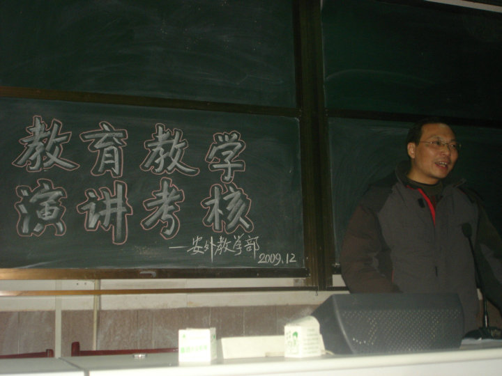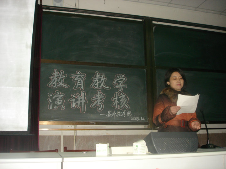 為全面提高教師的教育教學(xué)水平,落實(shí)科學(xué)發(fā)展觀,加強(qiáng)師資隊(duì)伍建設(shè),我校于12月下旬起開展新一輪 “教壇新秀” 、 “教學(xué)能手” 、 “安外名師”評(píng)比活動(dòng)。參評(píng)老師需經(jīng)過教學(xué)設(shè)計(jì)、課堂教學(xué)、教育教學(xué)演講三個(gè)環(huán)節(jié)的考核。這項(xiàng)活動(dòng)的開展極大地促進(jìn)了教師業(yè)務(wù)能力的提升,為教師的成長搭建了堅(jiān)實(shí)的平臺(tái)。圖為參評(píng)老師的演講現(xiàn)場。
