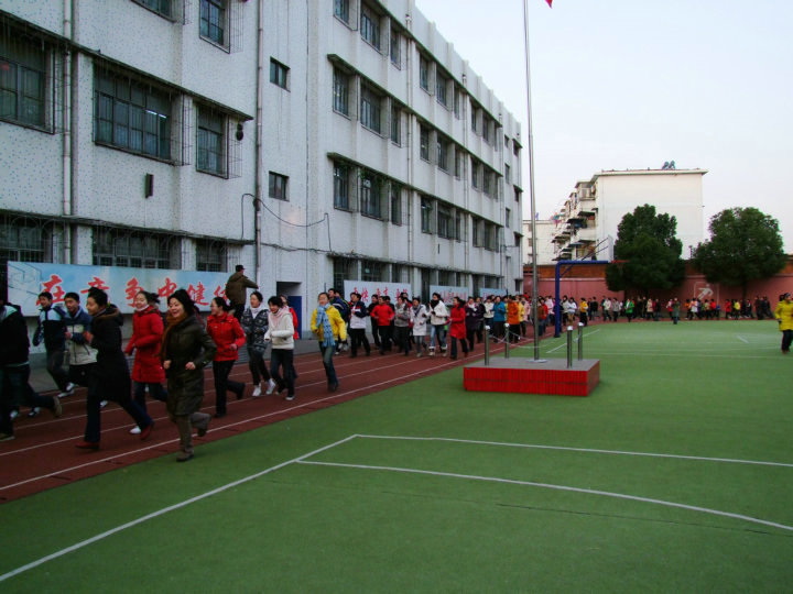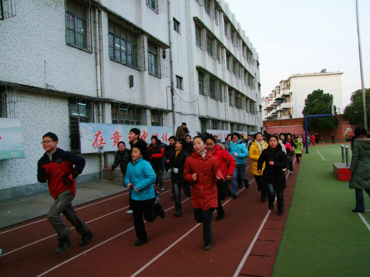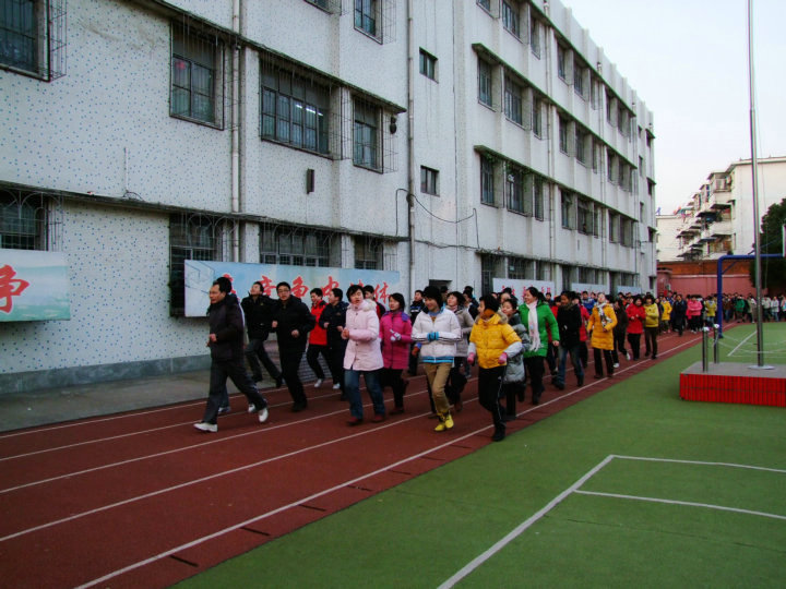 為增強(qiáng)學(xué)生身體素質(zhì),以更加飽滿的狀態(tài)迎接中考,我校初三年級學(xué)生在許緒常校長的親自指揮下,在班主任老師的帶領(lǐng)下每天堅持冬季晨跑鍛煉。
