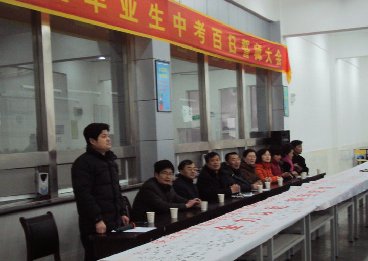 3月6日下午,初三年級(jí)全體師生在報(bào)告廳隆重舉行“中考百日誓師大會(huì)”,參加會(huì)議的還有程金柳校長(zhǎng)及學(xué)校全體中層領(lǐng)導(dǎo)和部分學(xué)生家長(zhǎng)代表。大會(huì)由吳桂來主任主持,在吳主任慷慨激昂的言語中“中考百日誓師大會(huì)”拉開了序幕。校長(zhǎng)助理何助理、學(xué)生家長(zhǎng)代表、教師代表、學(xué)生代表分別做了發(fā)言,并對(duì)同學(xué)們提出殷切的希望。