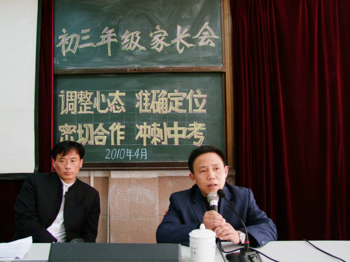 會議第一項(xiàng)施慶峰老師首先代表學(xué)校及初三年級組向各位家長表示謝意,然后就初三學(xué)生作學(xué)情分析,最后就后期學(xué)生的復(fù)習(xí)生活等情況向家長提了幾點(diǎn)建議。