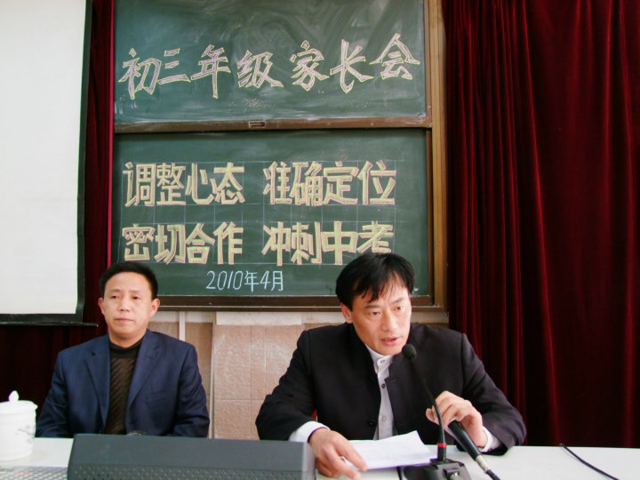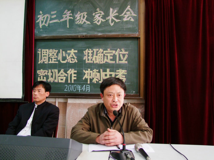 為進(jìn)一步密切家庭與學(xué)校的聯(lián)系,做好初三后期復(fù)習(xí)動(dòng)員工作,提高教育質(zhì)量,安慶市外國語學(xué)校西區(qū)于2010年4月5日下午舉行了初三年級學(xué)生家長會。本次家長會的主題是“調(diào)整心態(tài)、準(zhǔn)確定位、密切合作、沖刺中考”。本次會議由教學(xué)部凌謙主任主持,許校長及初三年級長施慶峰老師出席了本次會議。