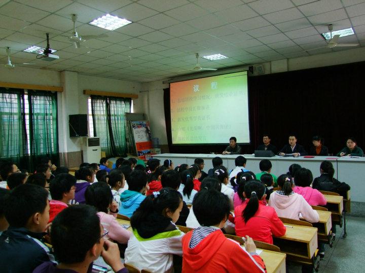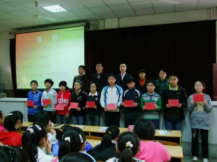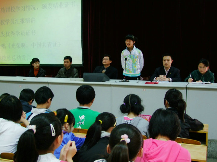 2010年4月29日早讀課,安慶市外國(guó)語學(xué)校西區(qū)團(tuán)委第六屆團(tuán)校結(jié)業(yè)典禮在一樓報(bào)告廳隆重舉行。出席本次結(jié)業(yè)典禮的有安外陳一平校長(zhǎng)、德育部蘆丹主任及團(tuán)委委員,典禮由蘆主任主持。