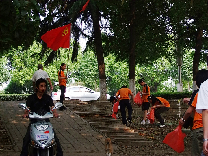 為了向市民宣傳保護(hù)環(huán)境的理念,同時(shí),也為了向安慶市民展示安慶市外國(guó)語學(xué)校作為一所綠色學(xué)校在學(xué)生環(huán)保理念教育上取得的成果,在6月5日第三十八個(gè)世界環(huán)境日來臨之際,我校特組織初二年級(jí)優(yōu)秀共青團(tuán)員代表40多人到安慶市蓮湖公園進(jìn)行垃圾清理活動(dòng)。上午8時(shí)許,身著校服的同學(xué)們?cè)趲ш?duì)老師的帶領(lǐng)下興致勃勃地進(jìn)入了本次的“戰(zhàn)場(chǎng)”。在活動(dòng)中,同學(xué)們表現(xiàn)出了高昂的干勁,他們不怕累、不怕臟,細(xì)心地?fù)焓白约核吹降拿恳粯永?。同學(xué)們的行動(dòng)博得了園中晨練和納涼的市民們的一致贊揚(yáng)。上午十時(shí)許,活動(dòng)接近尾聲,同學(xué)們看著自己手中滿滿的勞動(dòng)成果,都由衷地露出了欣慰的笑容?;顒?dòng)結(jié)束后,德育部蘆丹主任對(duì)活動(dòng)進(jìn)行了點(diǎn)評(píng),并對(duì)同學(xué)們的辛勤勞動(dòng)給予了高度贊揚(yáng)。來來往往的市民們也再次感受到了安外學(xué)生良好的素質(zhì)。