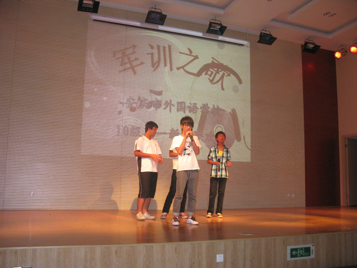 白天訓(xùn)練場(chǎng)上大家你追我趕,晚上報(bào)告廳一片歡聲笑語(yǔ)。一曲《朋友》拉開(kāi)了聯(lián)歡晚會(huì)的序幕,軍訓(xùn)讓同學(xué)們結(jié)下了兄弟姐妹情誼。今晚在此歡聚一堂,颯爽的風(fēng)姿,嘹亮的歌聲博得了大家熱烈的掌聲。教官們的精彩表演也讓同學(xué)們見(jiàn)識(shí)了軍訓(xùn)中最嚴(yán)肅的他們的可愛(ài)一面。最后一首集體大合唱《嚴(yán)明紀(jì)律歌》再一次響徹學(xué)校禮堂,為了明天屬于同學(xué)們自己的閱兵式,出發(fā)吧!