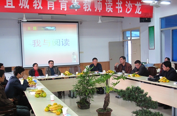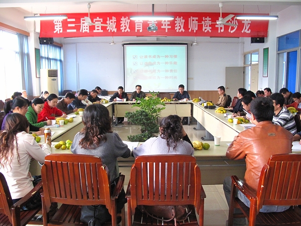 2010年10月15日第三屆宜城教育青年讀書沙龍活動在二中隆重舉行。來自各校的教師代表圍繞“我與閱讀”這一主題,積極發(fā)言,交流了自己在讀書當中所獲得的樂趣和經(jīng)驗。我校王娟老師參加了此次活動,會上她與各位老師分享了平時的讀書收獲以及我校師生如何開展讀書活動及取得的成效。