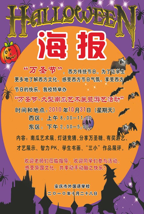 安慶市外國(guó)語學(xué)校東校區(qū)第六屆萬圣節(jié)活動(dòng)海報(bào)