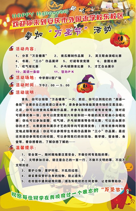 安慶市外國語學校東校區(qū)第六屆萬圣節(jié)活動指南