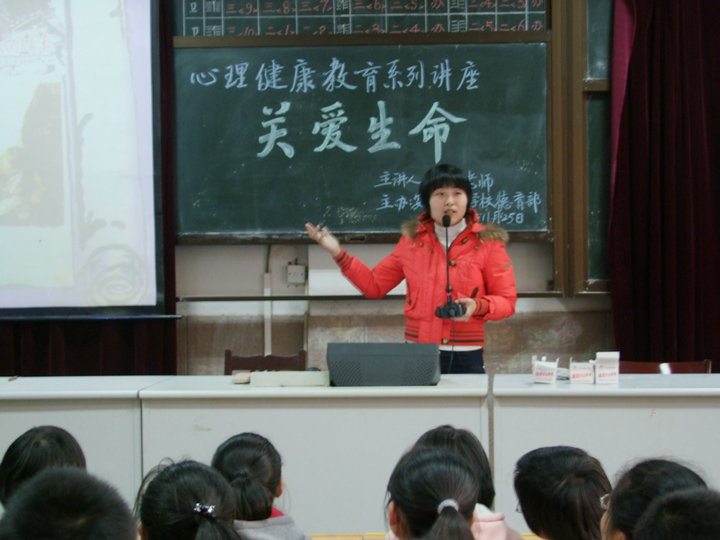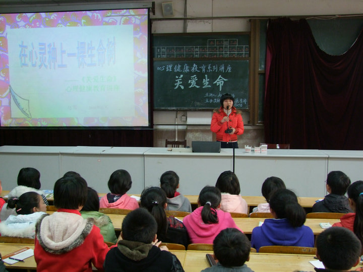 2010年11月25日周四下午團隊活動課,安慶市外國語學(xué)校(西區(qū))報告廳座無虛席,掌聲迭起。安慶市外國語學(xué)校陽光俱樂部、心理指導(dǎo)老師趙園正在為初一年級(1)~(5)班同學(xué)開設(shè)《關(guān)愛生命》心理健康教育系列講座,趙老師通過講述生命的價值,讓學(xué)生體驗了生命的脆弱,使同學(xué)們對生命有了全新的理解;講座也讓學(xué)生們學(xué)習(xí)、了解了《未成年人保護(hù)條例》相關(guān)知識及案例,更進(jìn)一步的讓學(xué)生認(rèn)識到未成年人犯罪給社會所帶來的危害,起到了很好的預(yù)防教育作用。
