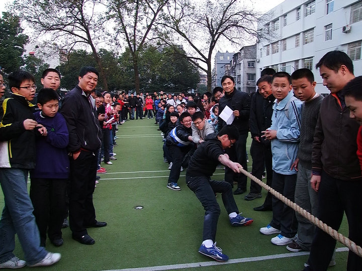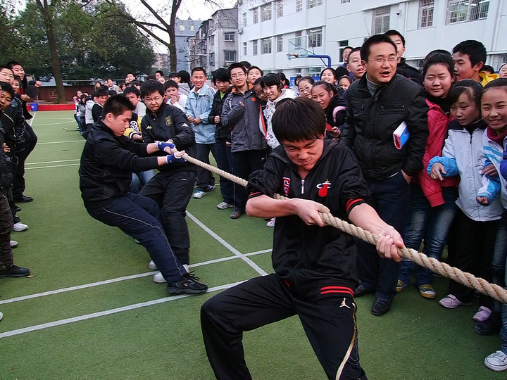 為豐富學(xué)生的課余文化生活,加強班級間的交流與學(xué)習(xí),培養(yǎng)學(xué)生的協(xié)作精神和團隊意識,德育部、初二年級組、體育組特舉行了學(xué)生拔河比賽,經(jīng)過緊張而又激烈的初賽、決賽,最終,初二(5)班力拔頭籌,本次比賽的具體結(jié)果如下: