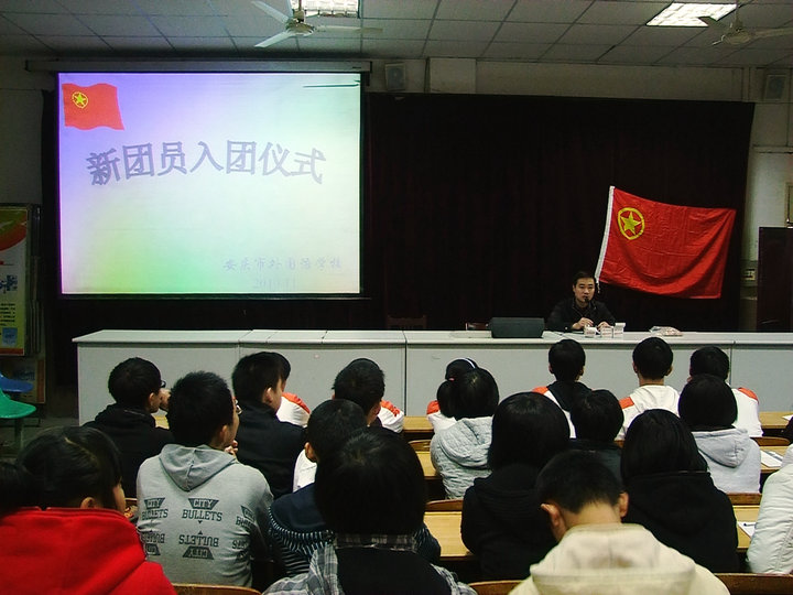 2010年11月30日上午早讀課,安慶外國語學(xué)校2010年新團(tuán)員入團(tuán)儀式在多媒體教室隆重舉行,德育部蘆丹主任及團(tuán)委老師參加了入團(tuán)宣誓儀式。