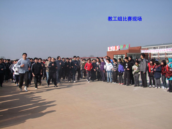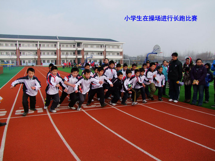 我校小學生在校田徑場進行長跑比賽。初中部、高中部和教職工共分初中男子組、初中女子組、高中男子組、高中女子組和教工組共五組在校外進行長跑比賽。27日上午8:00,比賽如期進行。由于經(jīng)過精心充分的準備,長跑比賽活動有條不紊,取得了圓滿成功。