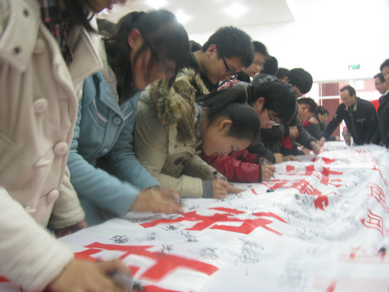 最后,與會領導、師生在“百日沖刺,只爭朝夕,奮力拼搏,決戰(zhàn)高考!”的巨大橫幅上進行了簽名活動。