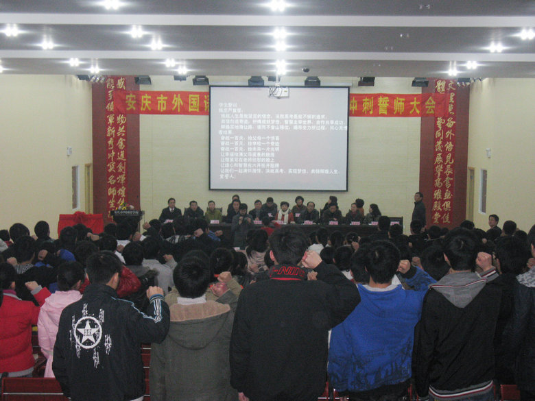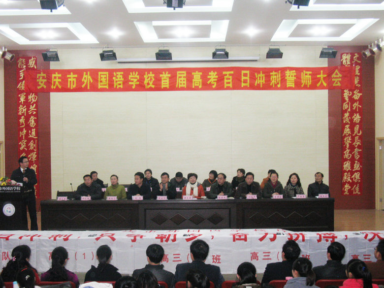 這次大會,似春雷,撼人心魄;似戰(zhàn)鼓,催人奮進。我們相信,經(jīng)過百日沖刺,安慶外國語學校2011年首屆高考一定會創(chuàng)造輝煌!