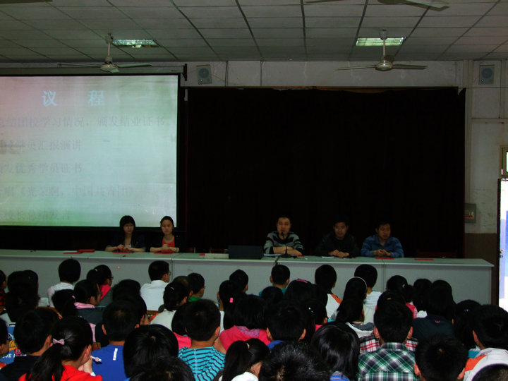 2011年4月27日早讀課,安慶市外國語學(xué)校(西區(qū))第七期團(tuán)校結(jié)業(yè)典禮在一樓報(bào)告廳隆重舉行。出席本次結(jié)業(yè)典禮的有校黨總支書記陳一平、德育部主任蘆丹及團(tuán)委委員。