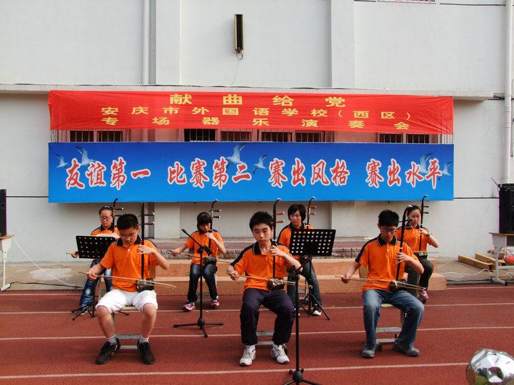 為了喜迎中國(guó)共產(chǎn)黨建黨90周年,5月12日下午課外活動(dòng)課,安慶市外國(guó)語(yǔ)學(xué)校民樂隊(duì)為初一師生呈現(xiàn)了一場(chǎng)民樂盛宴。