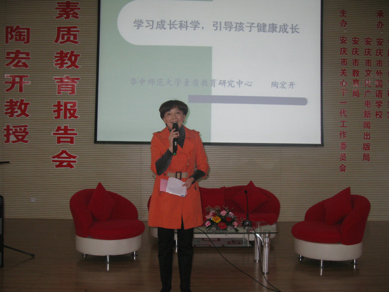 5月25日安慶市外國(guó)語(yǔ)學(xué)校東校區(qū)報(bào)告廳座無(wú)虛席,美籍華人、華中師范大學(xué)素質(zhì)教育研究中心陶宏開(kāi)教授以“學(xué)習(xí)成長(zhǎng)科學(xué),引導(dǎo)孩子健康成長(zhǎng)”為題,為我市師生作了一場(chǎng)別開(kāi)生面的學(xué)術(shù)報(bào)告。