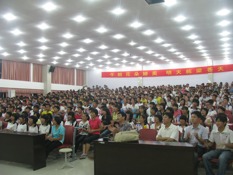 為貫徹我校“重基礎(chǔ)、強(qiáng)外語(yǔ)”的辦學(xué)理念,學(xué)校充分發(fā)掘現(xiàn)有資源,邀請(qǐng)了我校的外教Khim老師和高三年級(jí)的王柳浩同學(xué)及2011年參加首屆高考的江玄同學(xué)于2011年8月22日晚7點(diǎn)整在校報(bào)告廳為高一年級(jí)全體學(xué)生舉辦英語(yǔ)外教講座和學(xué)習(xí)方法講座。高中部唐文生主任、徐海宏主任、國(guó)際部徐最太主任、高一年級(jí)組長(zhǎng)操四清老師和高一年級(jí)由各班班主任帶隊(duì)的600多名高一學(xué)生認(rèn)真聆聽(tīng)了整場(chǎng)講座。