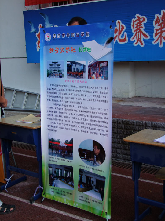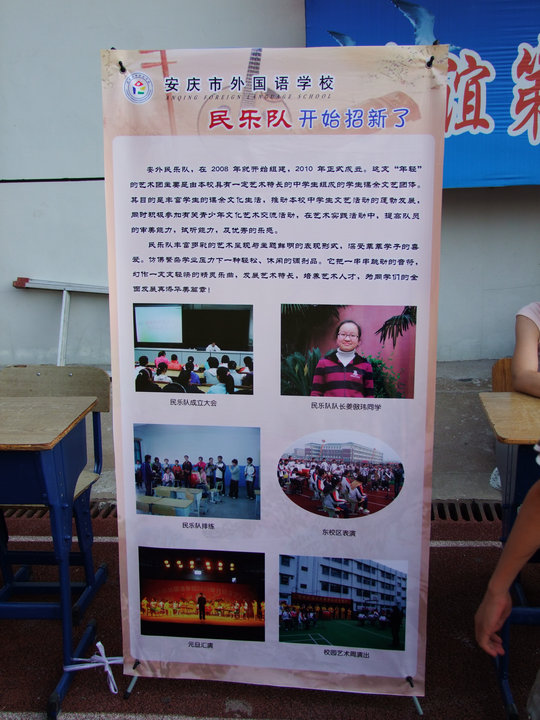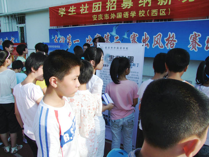 2011年9月15日下午課外活動,陽光明媚,安慶市外國語學(xué)校后操場音樂悠揚、人頭攢動,新學(xué)年別開生面的社團招新活動正在熱烈地進行中。