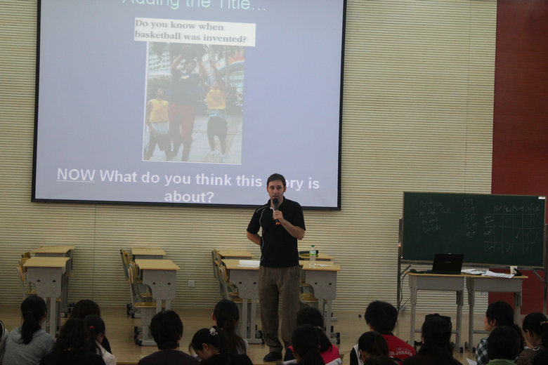 27日上午,各地市英語教研員和中學英語教學第一線的近1200名教師分別在我校報告廳和會議廳觀摩了兩位優(yōu)勝老師的優(yōu)質(zhì)課展評;接著聆聽了美國專家賈斯丁帶來的學術報告。報告對英語閱讀教學進行了詳盡而生動的闡述,還與教師們進行了多次互動,會場氣氛熱烈,讓與會教師受益匪淺;最后省教科院文科二室杜效明主任做了熱情洋溢的總結(jié),大會在全體與會教師滿意和收獲中圓滿結(jié)束。