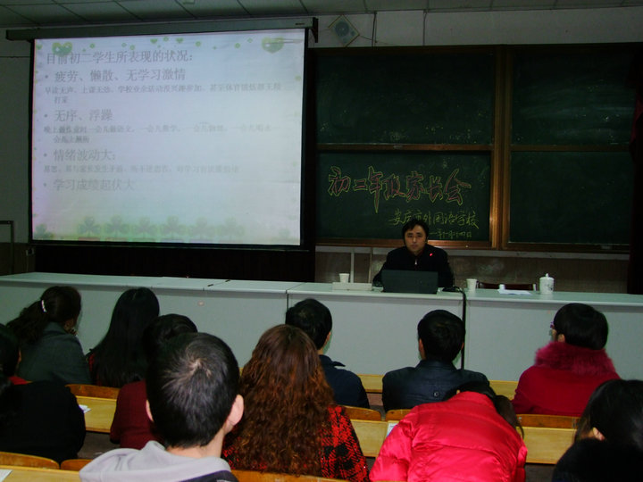 為了進(jìn)一步加強(qiáng)學(xué)校與家庭、教師與家長之間的密切聯(lián)系,提升家庭教育的科學(xué)性和有效性,更好的形成家校教育的合力,真正達(dá)到共同培養(yǎng)孩子的目標(biāo),安慶外國語學(xué)校(西區(qū))于2011年11月24日晚上7:00召開了初二年級學(xué)生家長會。