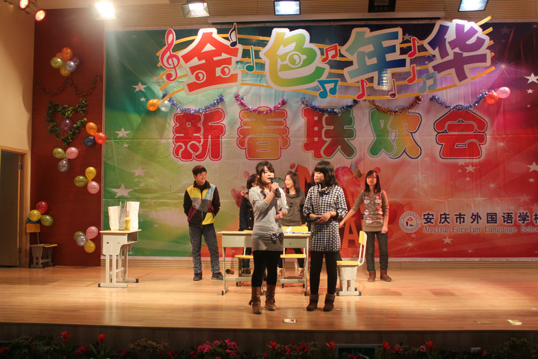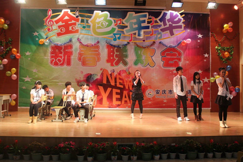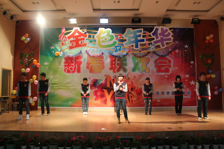 12月28日,我校報(bào)告廳人聲鼎沸,燈火輝煌, 安慶市外國(guó)語(yǔ)學(xué)校金色年華元旦文藝匯演在此隆重上演。