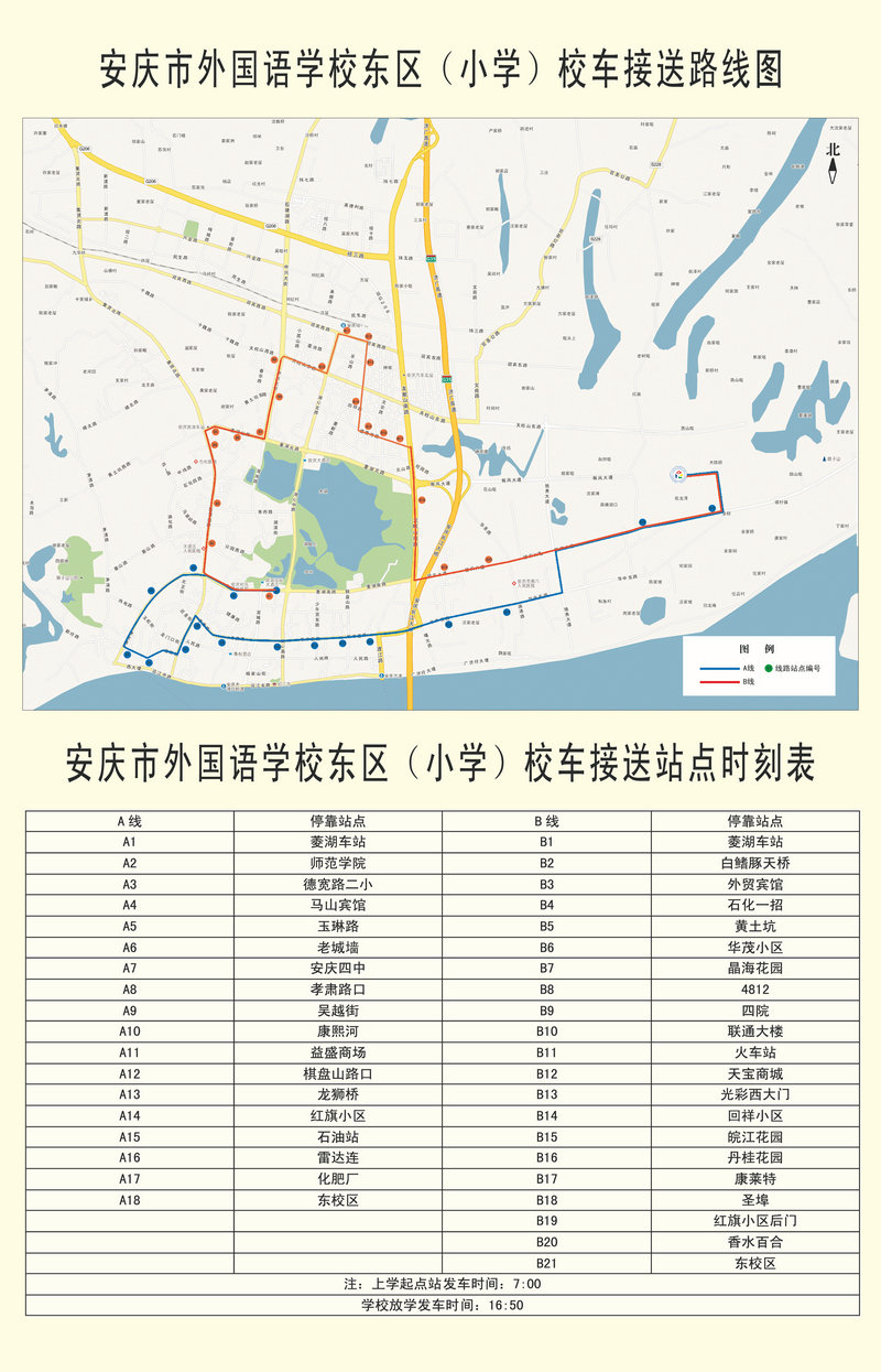 安外東區(qū)小學(xué)校車線路圖和時(shí)刻表