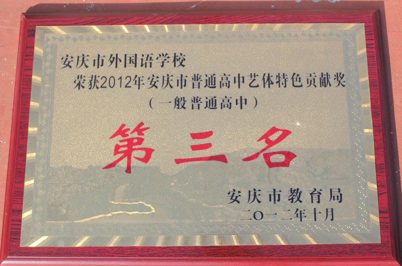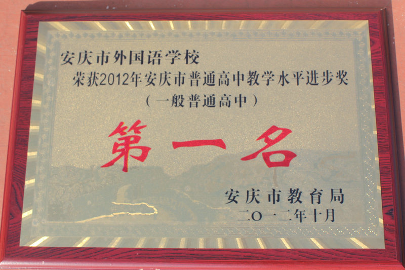 “安慶市普通高中教學(xué)水平進步獎”是對學(xué)生從中考入學(xué)到高考,三年成績提升的肯定。外國語學(xué)校“榮獲教學(xué)水平進步獎第一名”充分體現(xiàn)了學(xué)校在高中學(xué)生培養(yǎng)方面實現(xiàn)了“低進高出、高進優(yōu)出”的跨越。榮獲“2012年安慶市普通高中藝體特色貢獻獎”是市教育局對我校在藝術(shù)、體育特長生培養(yǎng)方面的突出貢獻的表彰。