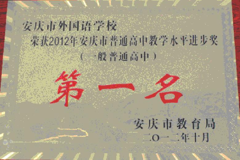 2012年 安慶市普通高中教學(xué)水平進(jìn)步獎(jiǎng) 第一名