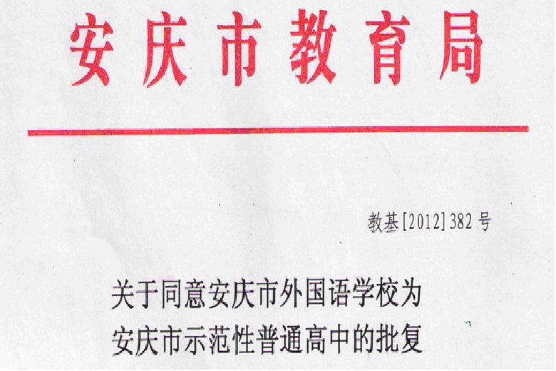 2012年 被市教育局評定為安慶市示范性高中(全市第一所獲此殊榮的民辦學(xué)校)。