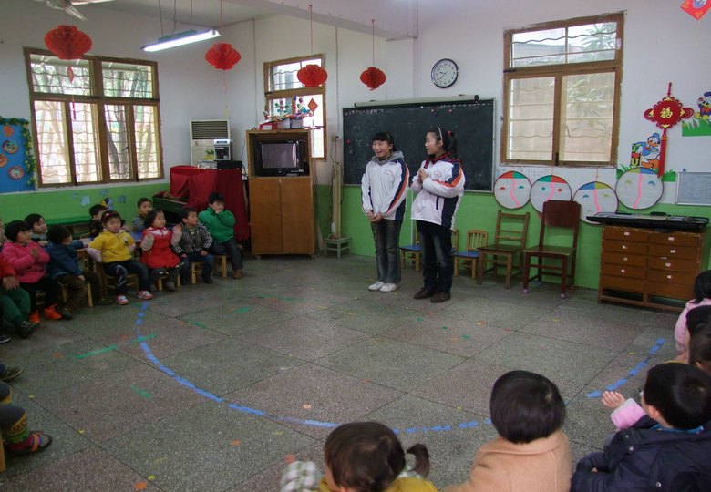 由于幼兒園的小朋友對(duì)雷鋒不是很了解,因此志愿者協(xié)會(huì)的同學(xué)們首先向小朋友們介紹了雷鋒叔叔,講述了他的故事,還一起學(xué)唱了《學(xué)習(xí)雷鋒好榜樣》這首經(jīng)典的歌曲。緊接著,志愿者們?yōu)樾∨笥褌儽硌萘嘶顫娦路f的節(jié)目,并與小朋友們?cè)谑彝膺M(jìn)行了互動(dòng)游戲。