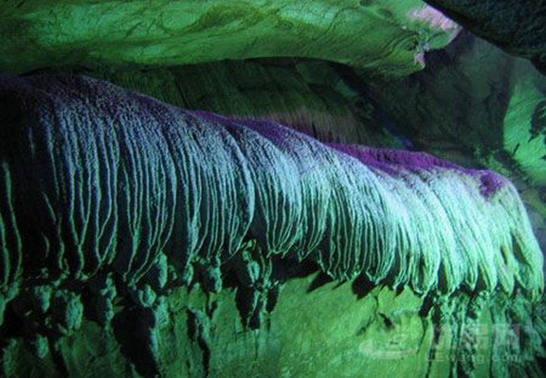 洞外,四面青山環(huán)繞,云霧際會(huì)于遠(yuǎn)峰,寧?kù)o而安逸,好似世外桃源。洞內(nèi),泉水緩緩流出,清澈見(jiàn)底,經(jīng)三億多年積淀的鐘乳石實(shí)乃之天地造化,讓人不得不感嘆大自然的鬼斧神工!