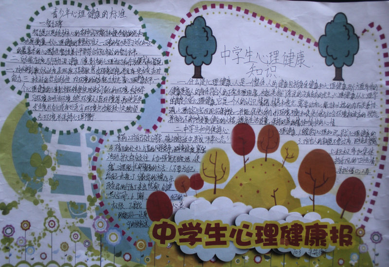 為了使安外的孩子再一次認識到心理健康的重要性, 初中部開展了“心理健康手抄報”活動,此次活動受到了心理老師和廣大班主任的高度重視,任務剛布置下去,陽光小屋就收到了幾百份如雪花片般的手抄報,孩子們積極參加此項活動,把自己對心理健康的認識,以及在學習和生活中遇到的心理困惑在手抄報中用自己的文字和生花妙筆表達了出來。