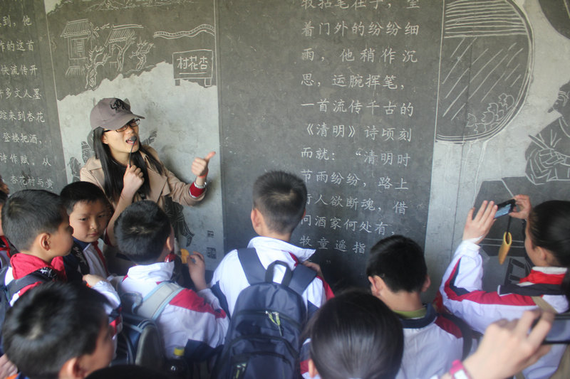 人說江南好,春來江水綠如藍,伴著和煦的春風,4月12日,小學部600多名師生分乘12輛大巴車前往“天下第一詩村”——池州杏花村踏春巡游。