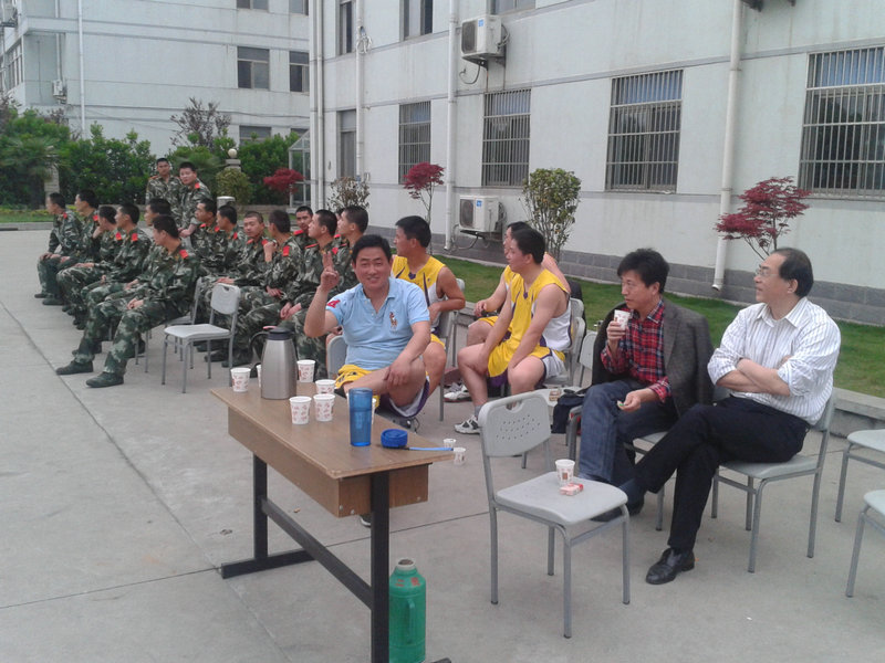 為加強我校與部隊的溝通、交流與合作,促進軍民團結,增進軍民魚水情,我校教工籃球隊在工會徐主任、團委金老師的帶領下于4月16日下午在武警五中隊籃球場展開了一場“軍民共建”籃球友誼賽。張燕斌校長親臨比賽現(xiàn)場,為隊員們鼓勁助威。隨后,張校長和徐主任參觀了部隊內務和營區(qū)。